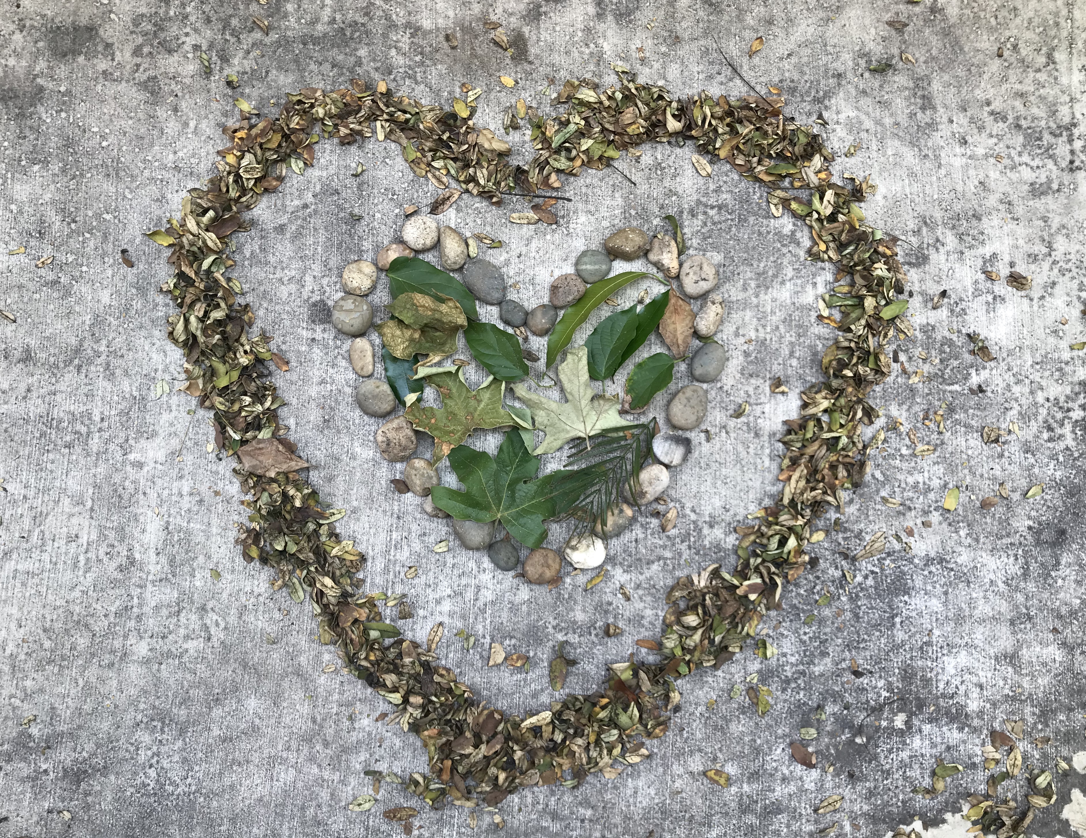 I had hard time thinking of what I wanted to create for this weeks art activity. Since I am stuck in quarantine I was very limited to organic material I could find around my house. I decided my best bet was to find material in my backyard. I instantly realized what I wanted to do once I went there. My family and I haven’t been going in my backyard so there is dead leaves all over the ground. My idea for my project was to create something using the dead leaves, rocks, and living leaves in my backyard and do a bit of cleaning at the same time. I decided to create a heart out of the rocks and fill it in with dead leaves that have fallen off my plants and pull some living leaves off of them as-well. I then took a bunch of the small dead leaves that were all over the ground and created a border around the rocks. I wanted to play with the theme of life and death. My creation was inspired by a quote by Haruki Murakami that said said “death is not the opposite of life, but a part of it”. The heart is symbolic of life itself and inside of it are both dead and living leaves. Nobody can escape death so people should not live their lives in fear of it. The border of the dead leaves around the heart represents that there is no escape of death. I think my creation does a great job of expressing my idea.